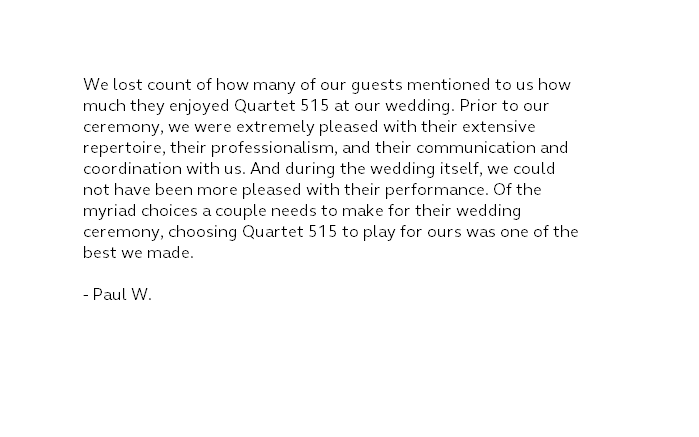 Live music is an investment in atmosphere, emotion, and experience. At Quartet 515, we blend contemporary elegance with a modern perspective to create soundtracks that feel personal, refined, and unforgettable.